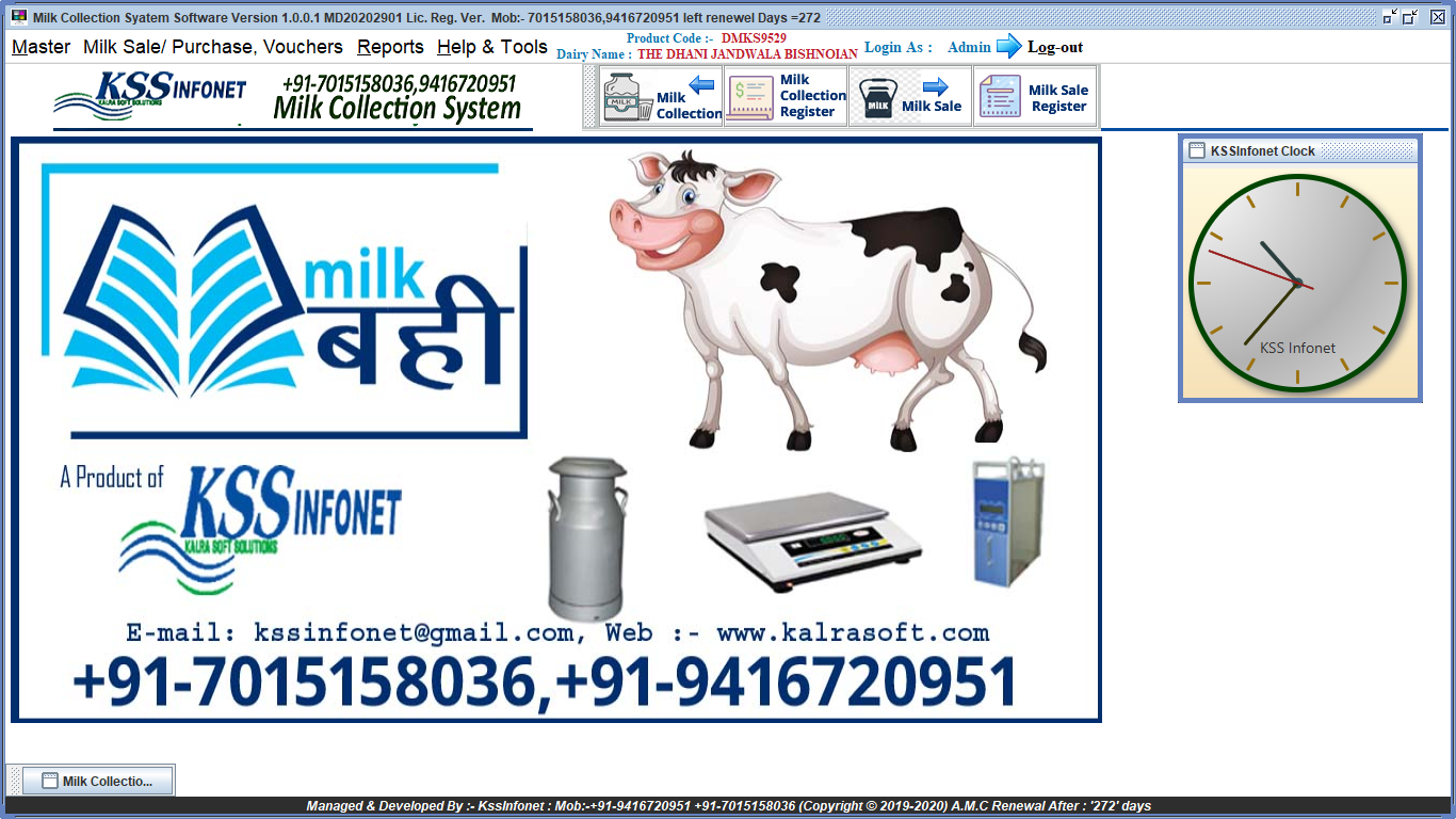 Milk Collection Software is especially design for milk collection centres at village level to handle their day to day accounts and dairy activities.